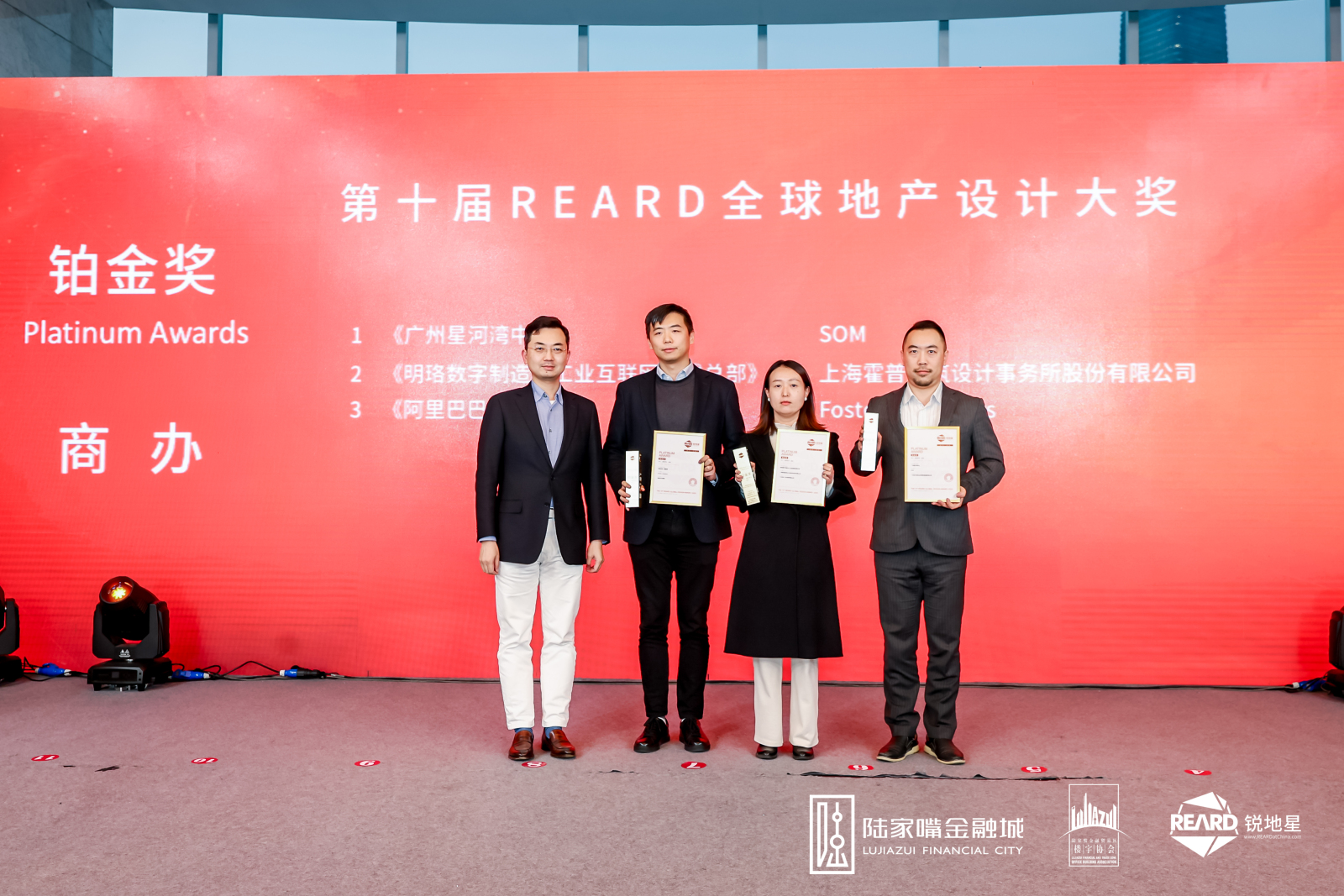 伴随“2025第三届陆家嘴城市日暨REARD焕新大会”的成功举办,REARD迎来了其具有里程碑意义的十周年。今年,系列奖项持续聚焦城市更新、低碳智慧与可持续发展,推动行业在变革中探寻新路径。在REARD系列奖项的颁奖仪式中,获奖名单相继揭晓,涵盖居住、商办、城市更新、双碳、BIM数字建造、青年设计星等类别。在经济环境充满挑战的背景下,本届大赛依然汇聚了来自全球的众多高水平作品,参赛机构实力与作品创新性均达到新的高度。众多国内外顶尖设计机构在激烈的角逐中脱颖而出,斩获殊荣。现场气氛热烈,获奖代表依次登台,共享荣耀时刻。